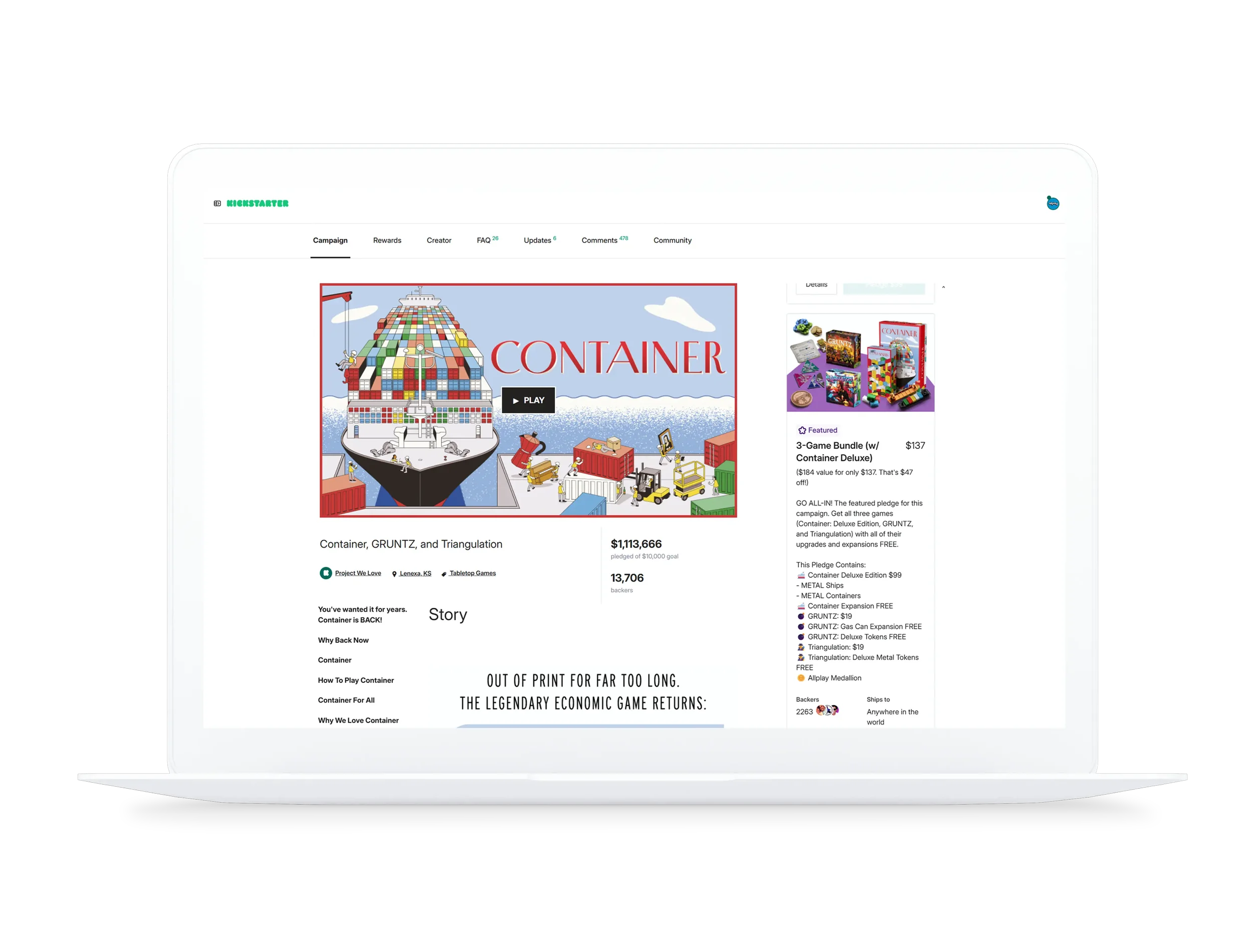 Led strategy on Allplay’s Kickstarter campaign for Container, GRUNTZ, and Triangulation, raising $1,113,666 from 13,706 backers in a 16-day period. Responsibilities included creating the page outline, writing copy, running Meta advertising (ROAS 3.5+) and collaborating with graphic design.